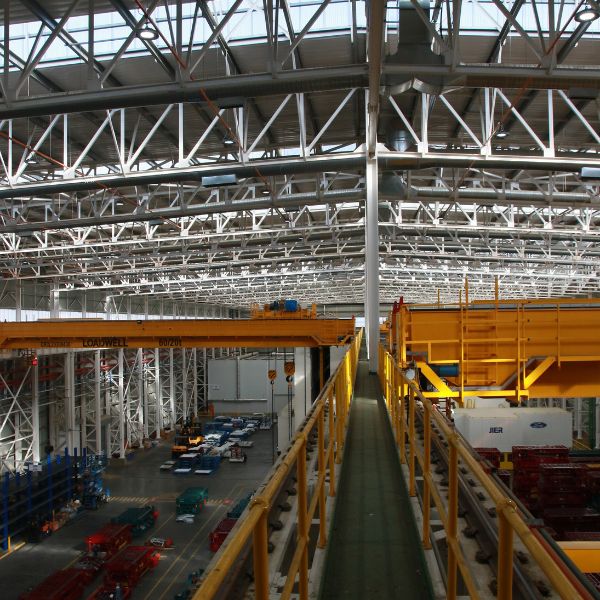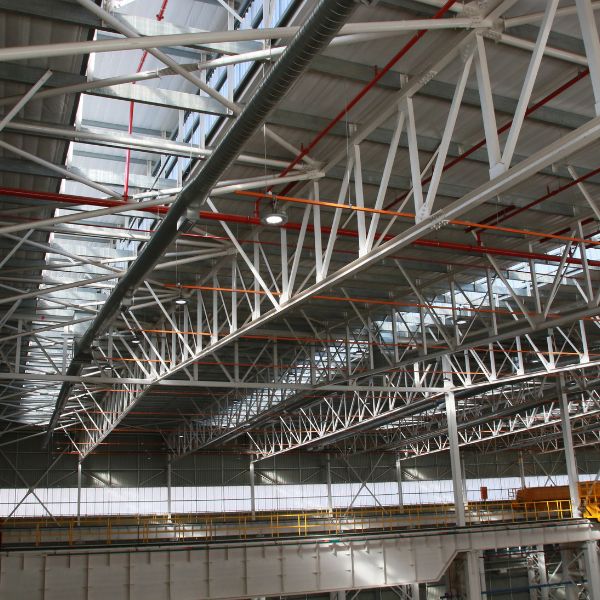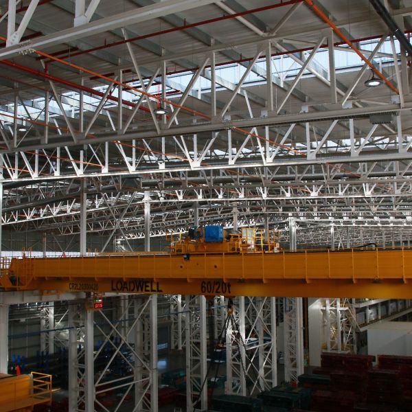 The building covers an area of about 10,000 square meters and uses approximately 1,800 tonnes of steel. B&T Steel was responsible for the crane building in the new facility. The extensive use of steel in the project is what makes it stand out. The building is quite substantial at its peak, with a PSI of 60, and it has four overhead cranes with a capacity of 60 tonnes each.