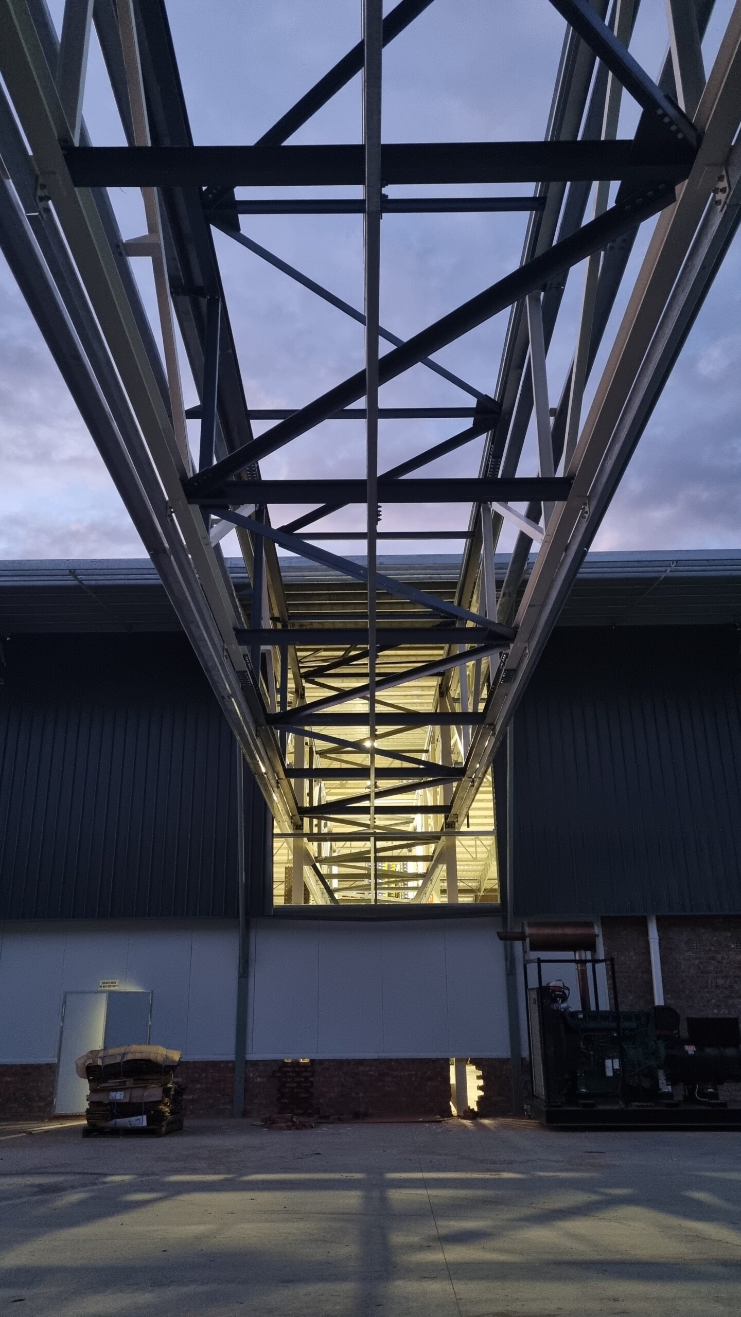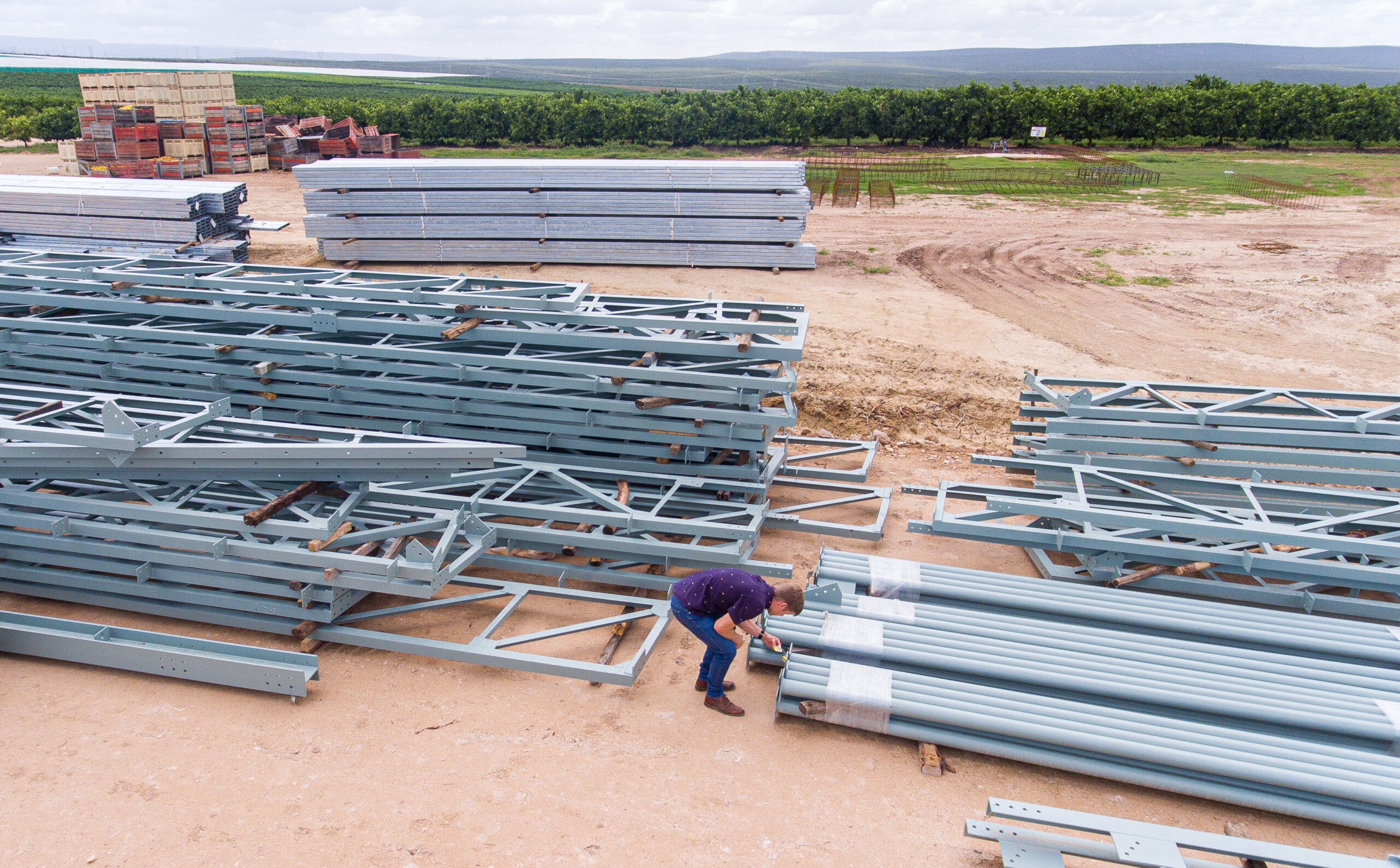 The Woodridge Packhouse project located in Addo in the Eastern Cape is an impressive feat of architectural and engineering design. The architect drew inspiration for the building's shape from the nets that cover citrus for protection against hail, birds, and insects. They aimed to create a skin over the rectangular form of the building, which allowed natural light to flood the interior while also embracing and celebrating the surrounding landscape. The project involved the construction of an aesthetically pleasing structural steel frame building with metal cladding. A total of 688 tons of steel was used, including a variety of profiles.