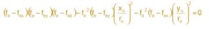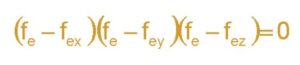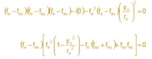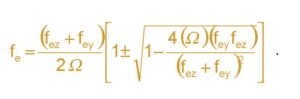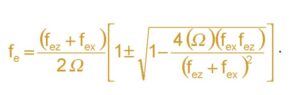 Substituting Ω = 1 – (yo / ro)2 and solving the term in square parenthesis using the quadratic formula, the solutions to this equation are fe = fex and