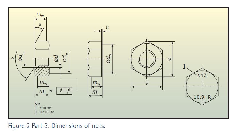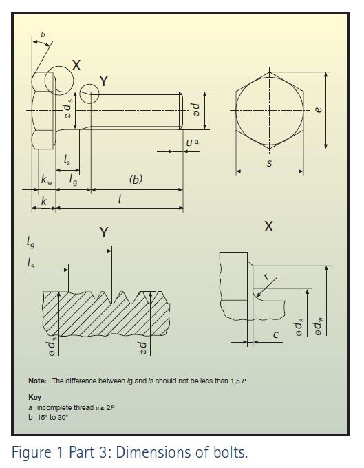 Nuts are to be style 1 EN ISO 4032, thread length to be per ISO 888 (as per figure 2 below).