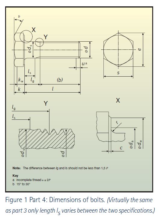 Because of the requirement for the shear plane to be well on to the unthreaded portion of the shank, a table of ‘clamp lengths’ for different lengths of bolts are specified in the code.