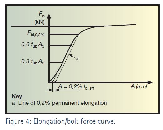 • The elongation/ bolt force relationship (if required): figure 4 is used to determine 0.2 % strain.